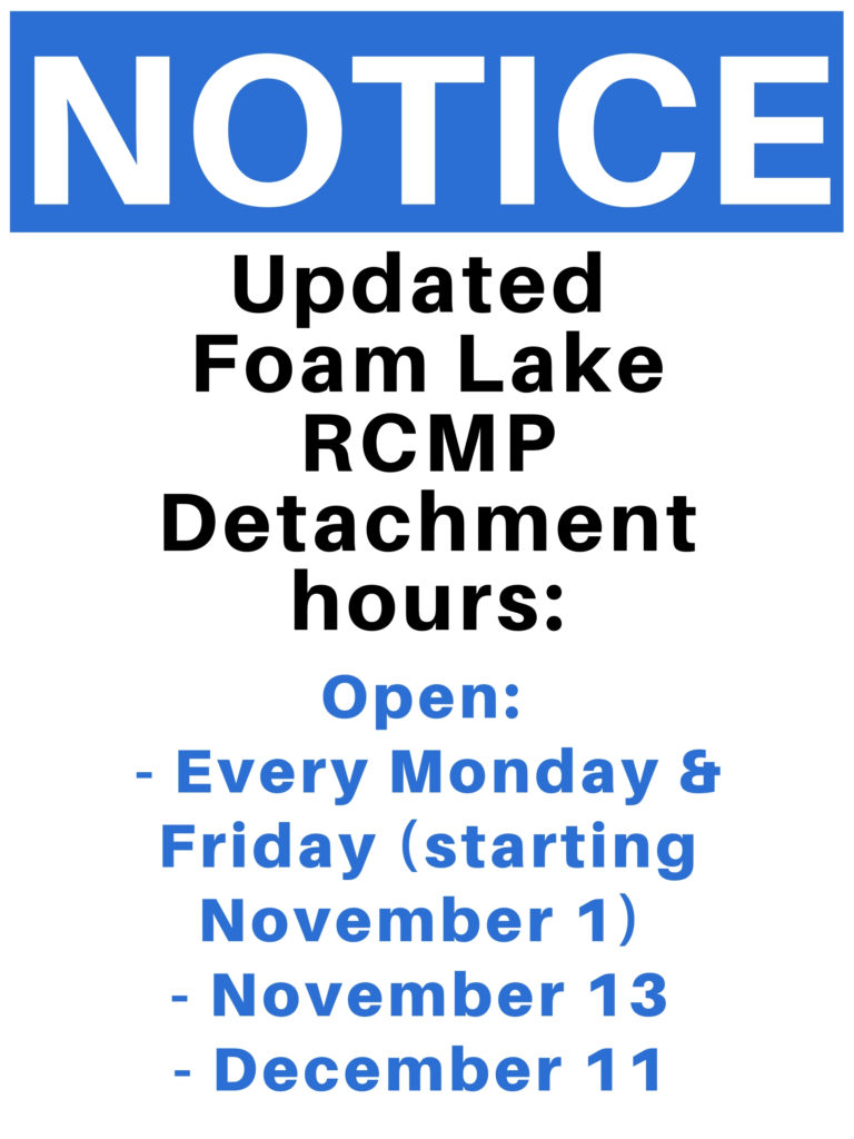 Notice: Updated Foam Lake RCMP Detachment hours.