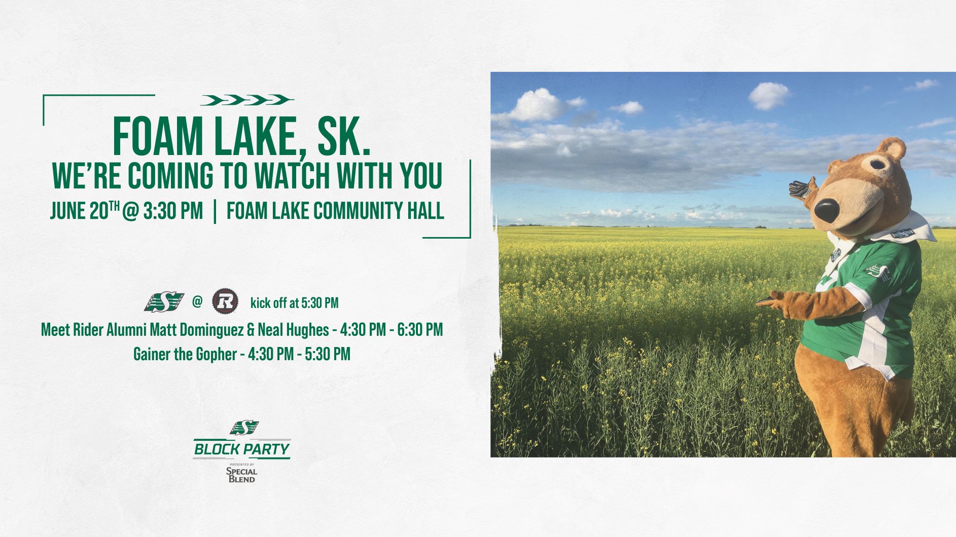 Rider Block Party Presented by Special Blend Calendar Add to Calendar Add to Timely Calendar Add to Google Add to Outlook Add to Apple Calendar Add to other calendar Export to XML When: June 20, 2019 @ 3:30 pm 2019-06-20T15:30:00-06:00 2019-06-20T15:45:00-06:00 Where: Foam Lake Community Hall